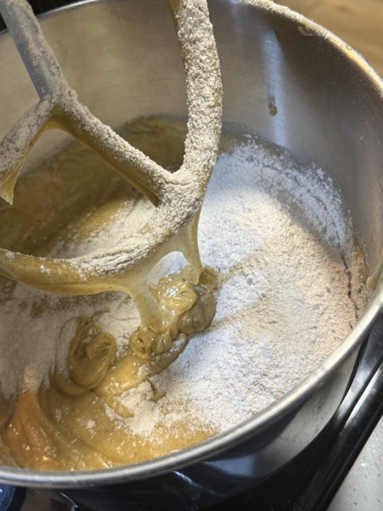 The batter is poured into pans and baked slowly to golden perfection, filling the kitchen with the comforting aroma of homemade goodness.